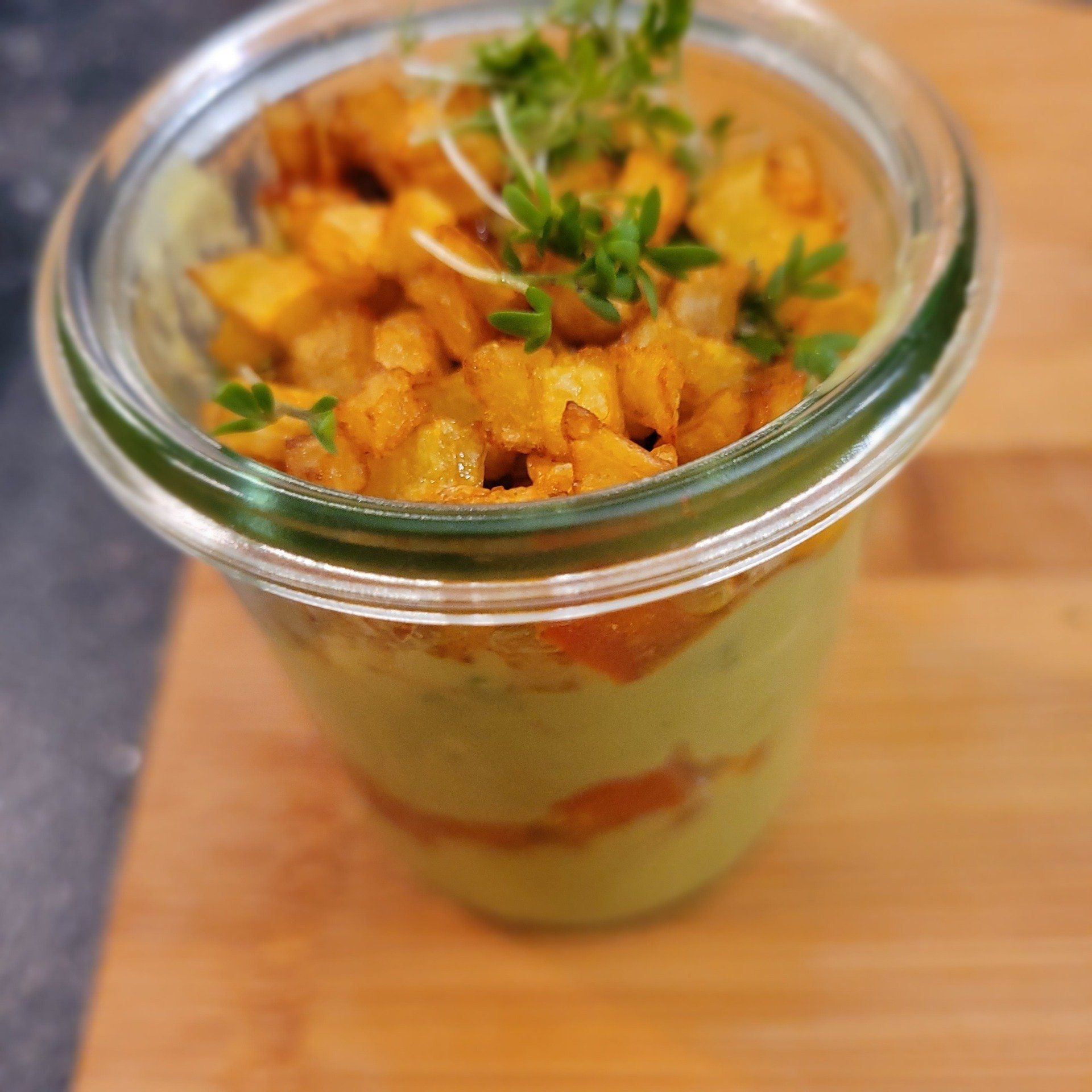 Es gab Avocado-Tomaten-Kartoffel im Glas.